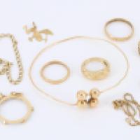 Lot en or jaune 18 carats (750 mil.) comprenant bagues, chaines, médailles, bracelet.