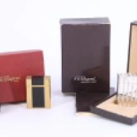 Briquet en laque de Chine et métal doré - Signé (petites rayures d'usage) (dans un étui en cuir et une boîte)