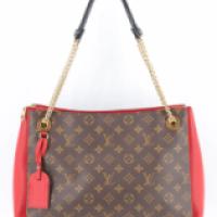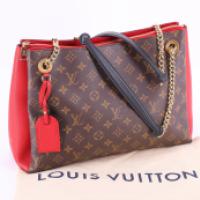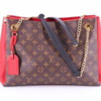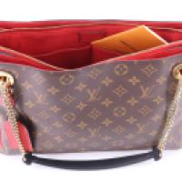 LOUIS VUITTON - Sac porté épaule modèle Suresnes en toile monogram et cuir cerise avec son dust bag et livret d'origine