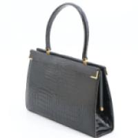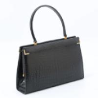 LANCEL PARIS - Sac en cuir noir imitation croco