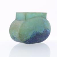 Vase en pâte de verre couleur vert et bleu XXe siècle