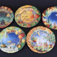 Faïencerie de Gien Lot de 5 Assiettes à dessert, édition spéciale de Noel. Dans leurs boites d’origine.