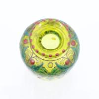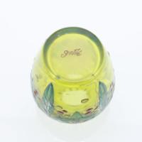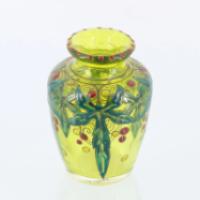 GALLE Petit vase en verre vert à décor émaillé de houx