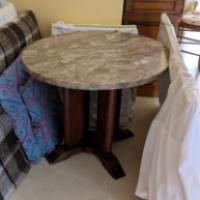Guéridon circulaire en chêne naturel, dessus de marbre.