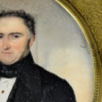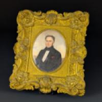 Importante miniature en médaillon peinte à la gouache sur feuille d’ivoire d’éléphant (Elephas maximus, Loxodonta africana ou Loxodonta cyclotis), représentant un portrait d’homme en buste.