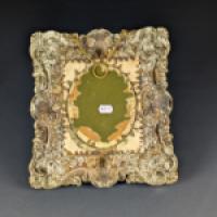 Riche cadre en laiton estampé à décors de coquilles et rinceaux fleuris.