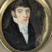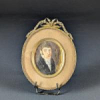 Médaillon peint à la gouache sur feuille d’ivoire d’éléphant (Elephas maximus, Loxodonta africana ou Loxodonta cyclotis), représentant un jeune homme en miniature.