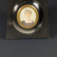 Miniature en médaillon représentant une jeune femme peinte a la gouache sur feuille d’ivoire d’éléphant (Elephas maximus, Loxodonta africana ou Loxodonta cyclotis).