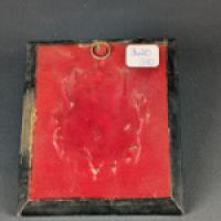 Cadre a cuvette en bois noirci à lunette en métal doré.