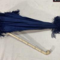 Ombrelle à manche pliant en ivoire d'éléphant sculpté, garniturre de satin bleu