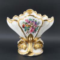 Important vase en porcelaine de Paris à décor polychrome et dorure de fleurs