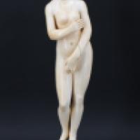 Important sujet en ivoire d’éléphant (Elephas maximus, Loxodonta africana ou Loxodonta cyclotis) représentant la Vénus dite du capitole reposant sur une base circulaire rapportée.