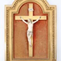 rouge, le titulus crucis également en ivoire. Cadre arciforme en bois et