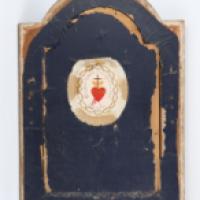 tissu portant la mention : « Famille Evellin/Cœur Sacré de Jésus j’ai