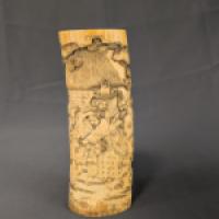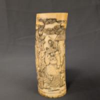 Vase porte pinceaux en ivoire sculpté (Elephas maximus, Loxodonta