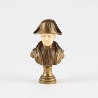 Cachet en bronze chryséléphantin représentant l'Empereur Napoléon Ier en buste, signé, monogrammé, le visage en ivoire d'éléphant (Elephas maximus, Loxodonta africana ou Loxodonta cyclotis).