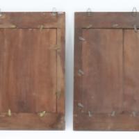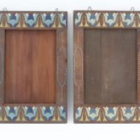 Paire de cadres en bois polychrome à décor de fleurs - Style Art Déco - Dim. Totales: 40 cm x 26 cm (manque une vitre à l'un, usures)