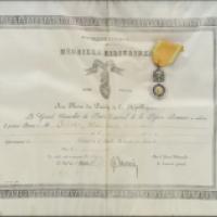 Diplôme de Médaille Militaire avec médaille - Année 1850 - 34 cm x 42 cm (pliures, taches)