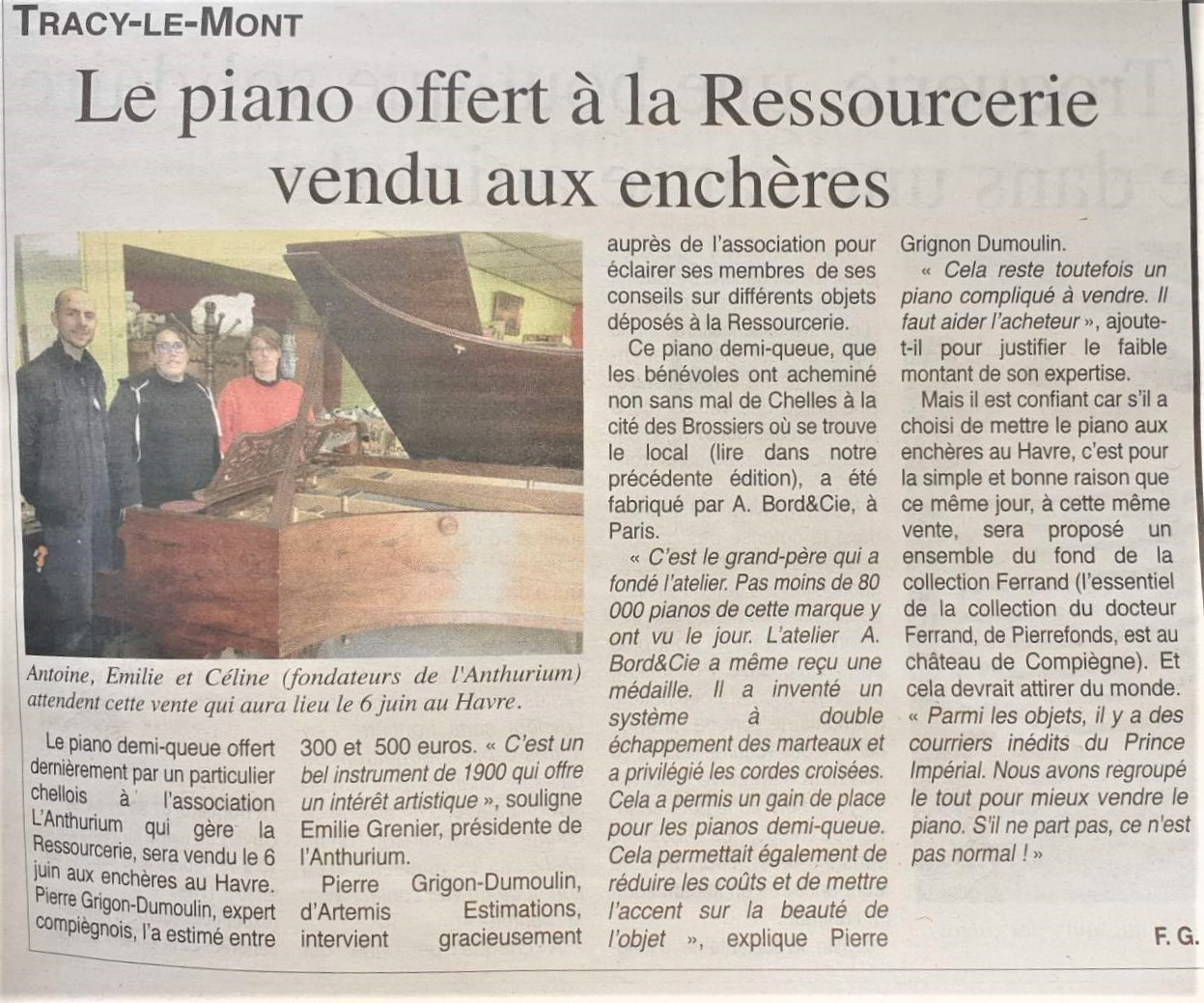 Le piano de l'assciation l'Anthurium vendu aux enchères.