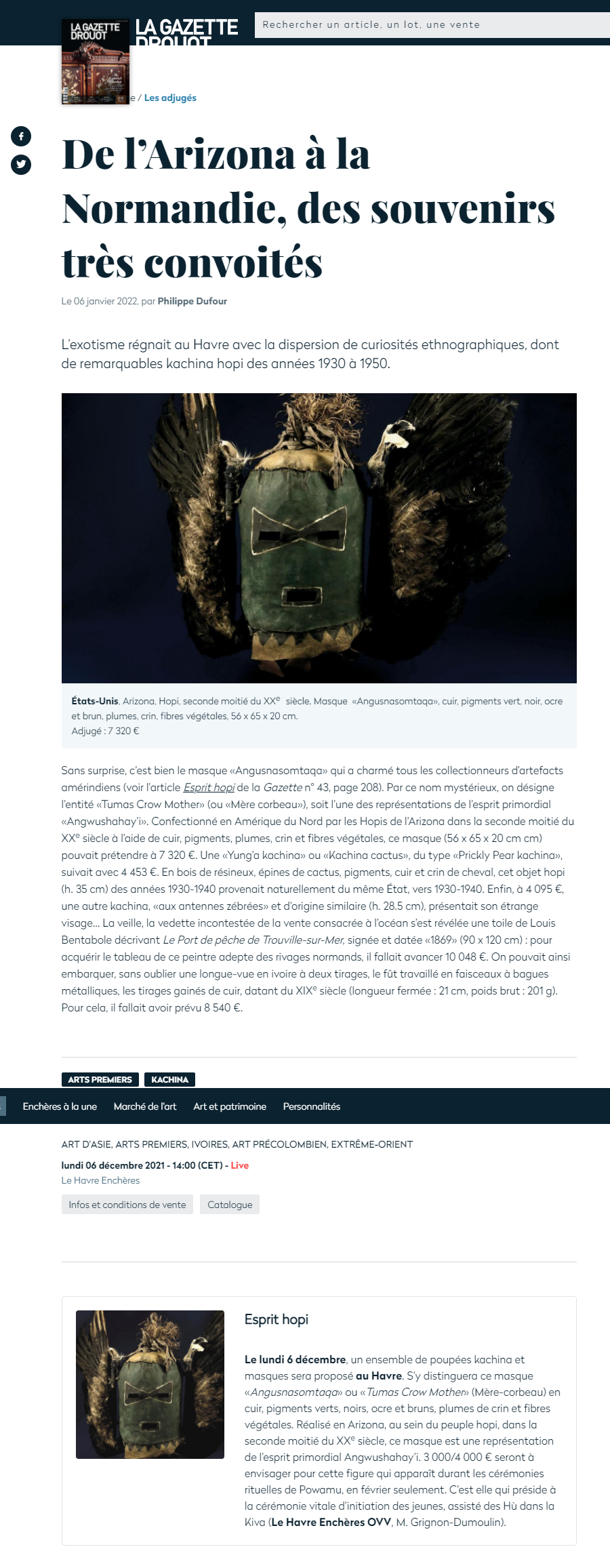 LES ELOGES DE LA GAZETTE DROUOT DU 6 JANVIER 2022.
