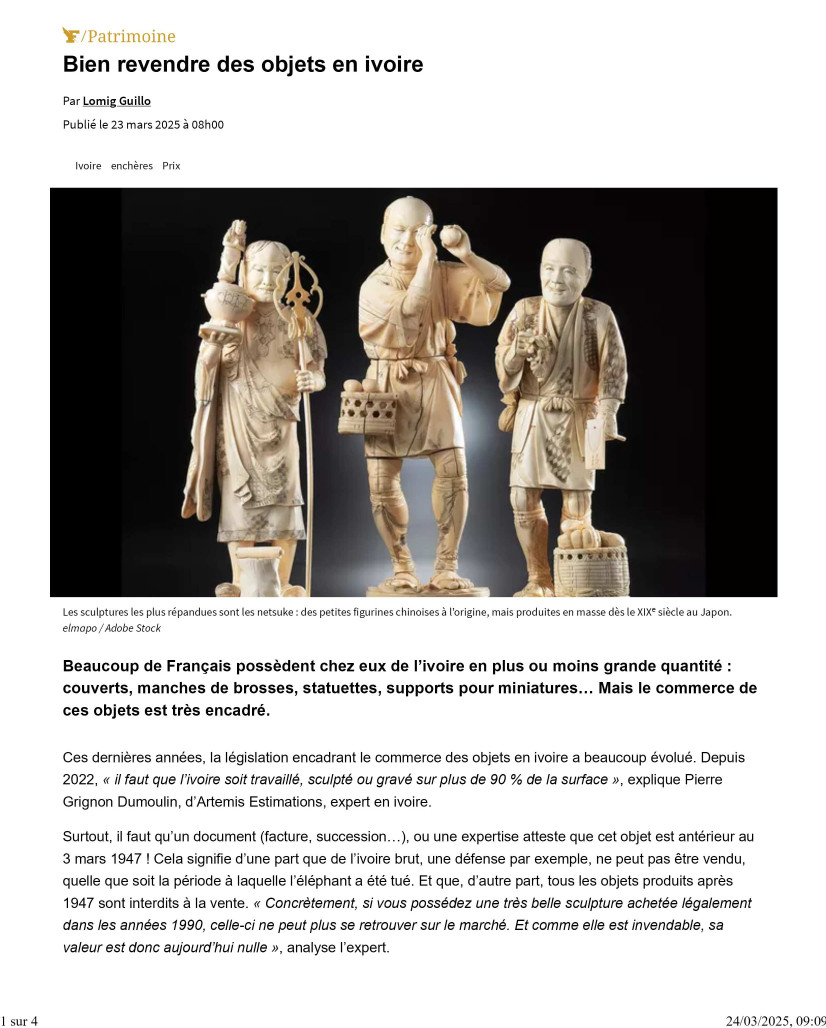 qui fait la valeur de l’ivoire, c’est la façon dont il a été travaillé et la rareté de l’objet. « Donc des objets de