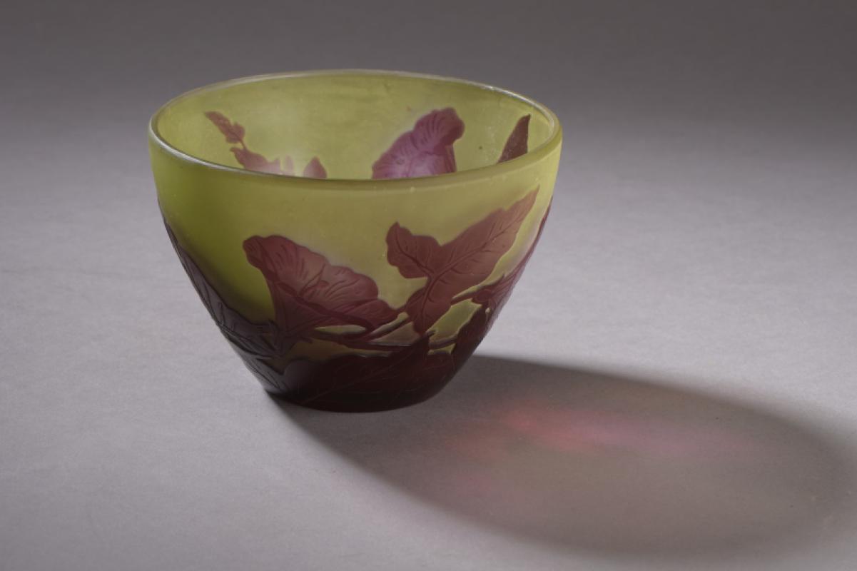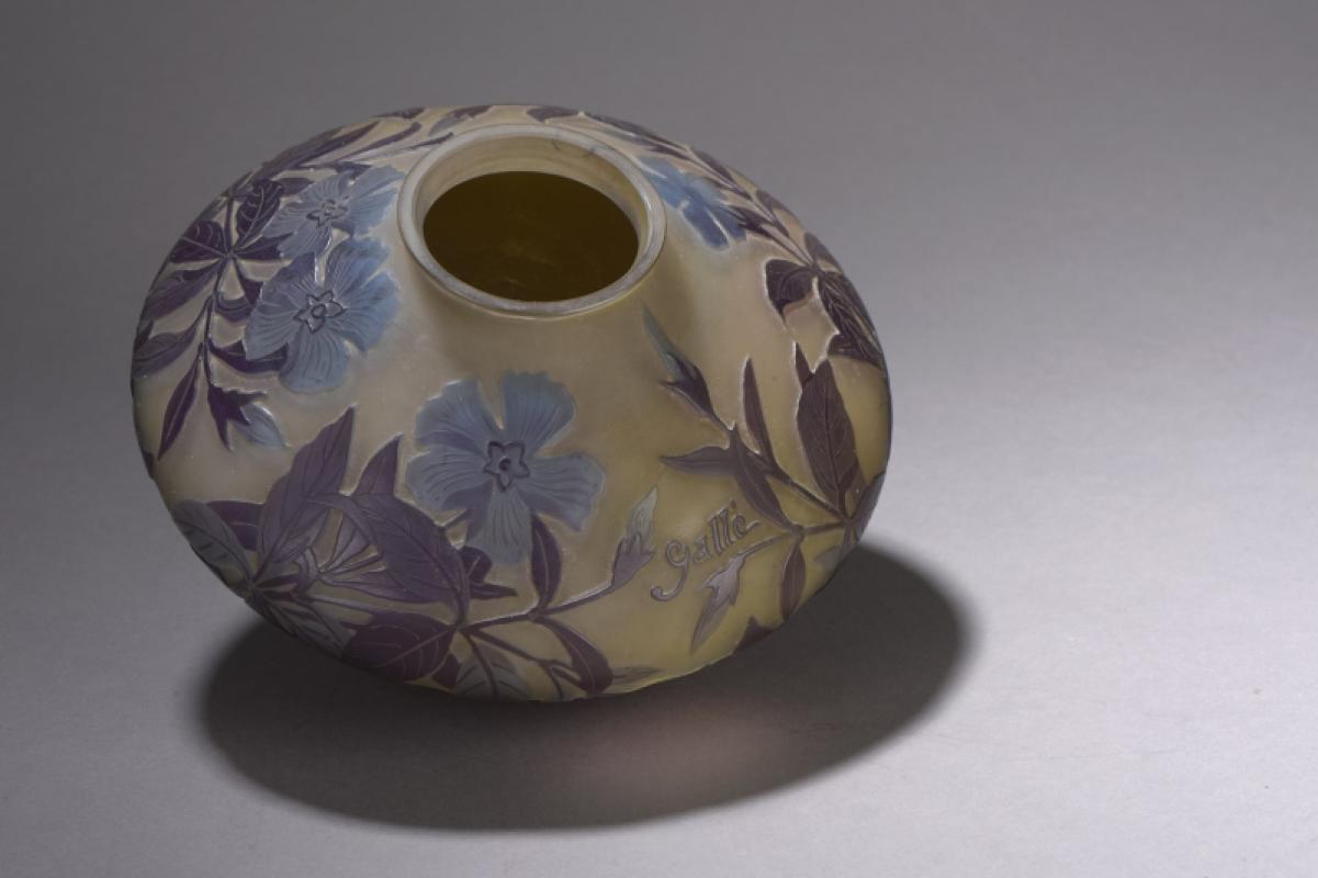 Signé et porte une étiquette " Établissements Gallé Nancy - Paris " et n° à l'encre noire " 8387 ".