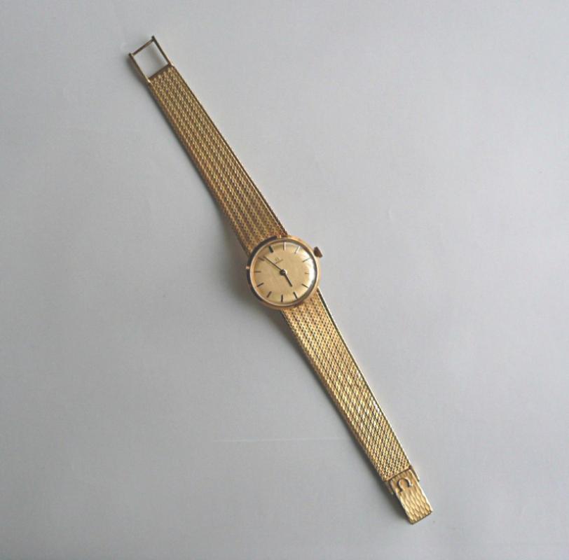 Montre bracelet de dame en or jaune à boîtier circulaire, mouvement à remontée mécanique.