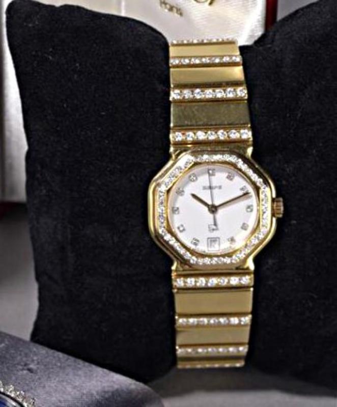 avec diamants. Guichet dateur à 6h et lunette
