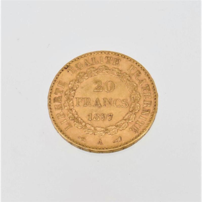 Monnaie de 20 francs or - type Génie - 1897 (A) - Poids: 6,4 g.