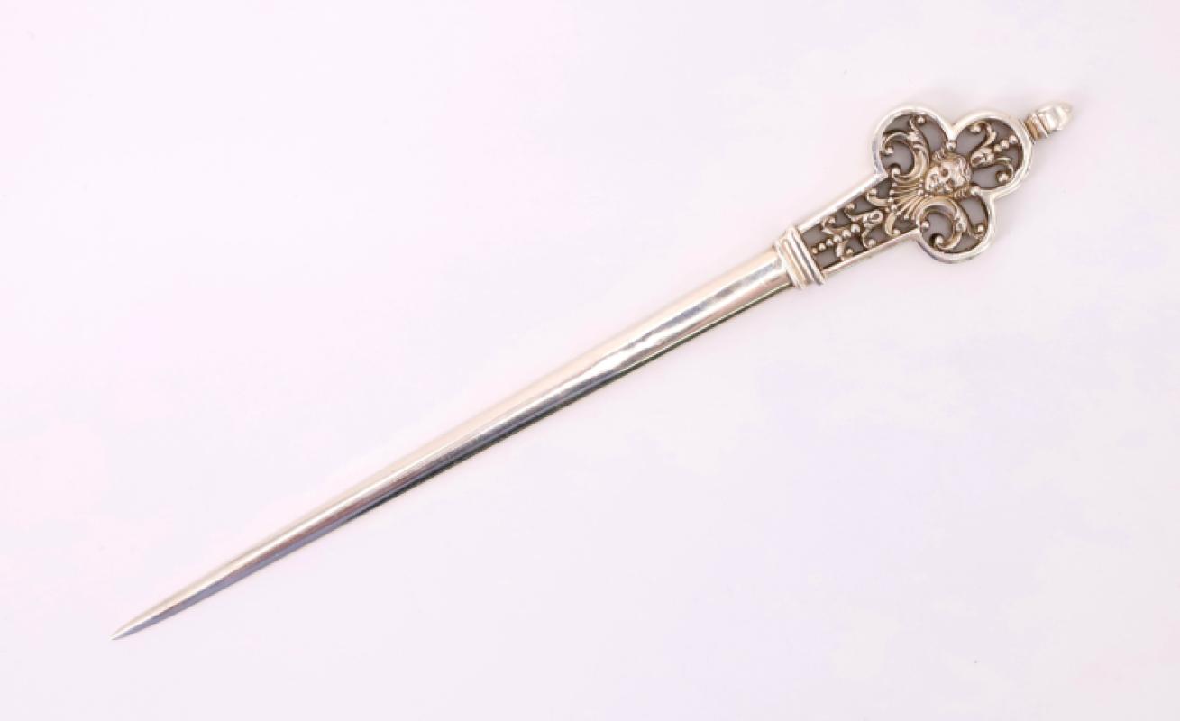 Coupe-papier en argent, manche à décor ajouré d'un mascaron
