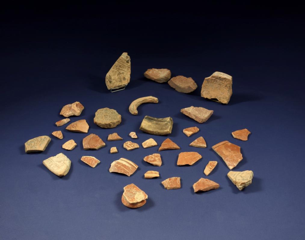 Fort lot de tessons et débris de poterie antique dont sigillées et tegulae.