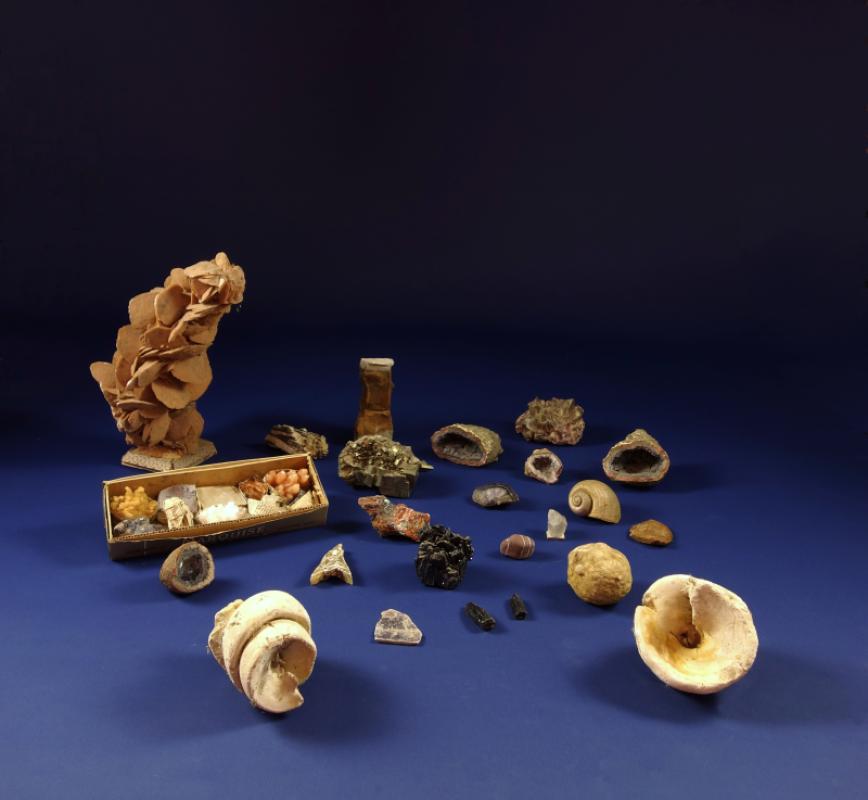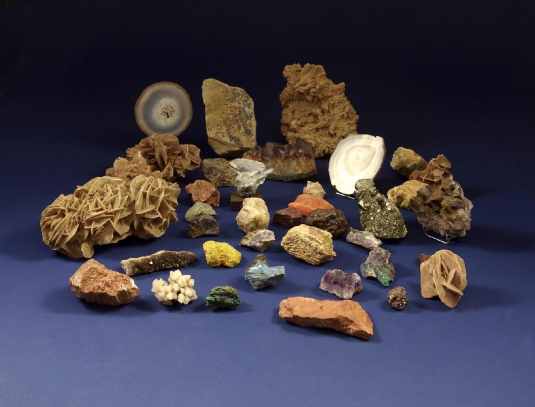 Collection de minéraux divers (roses des sables, marcassite, etc.)