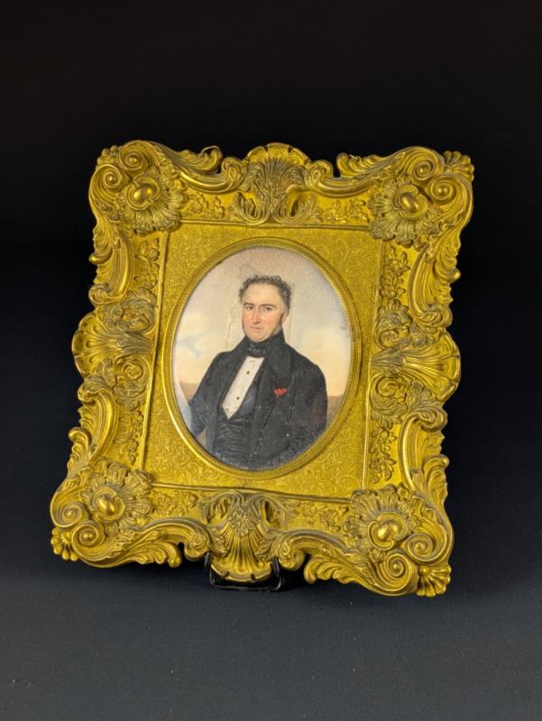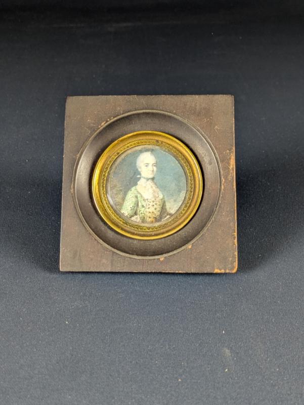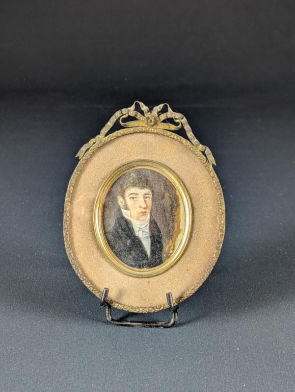 Importante miniature en médaillon peinte à la gouache sur feuille d’ivoire d’éléphant (Elephas maximus, Loxodonta africana ou Loxodonta cyclotis), représentant un portrait d’homme en buste.