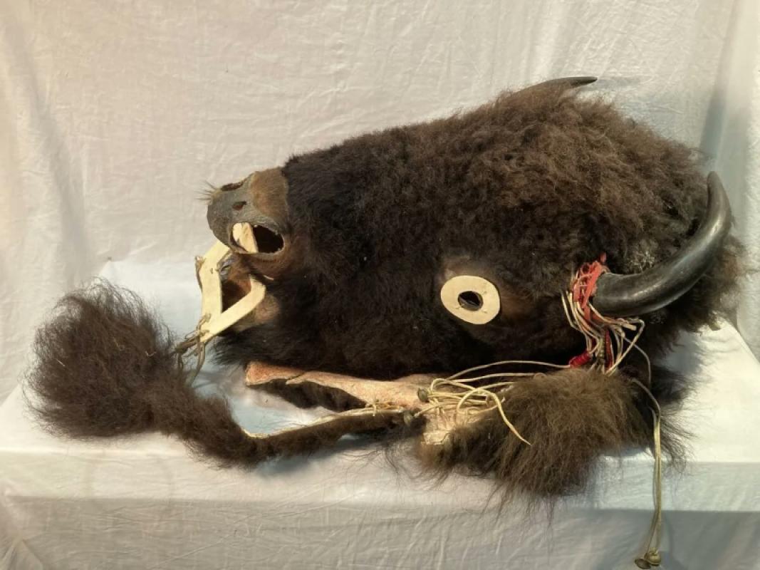 Masque de danseur pour la danse des bisons. Peau de Bison ((Bison bison, Linnaeus 1758)Très belle conservation. Ht : 70 cm