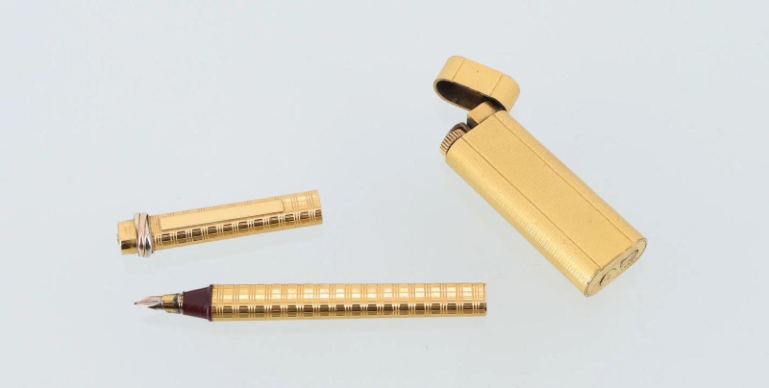 En savoir +CARTIER Stylo Trinity plaqué or et un briquet en métal plaqué or